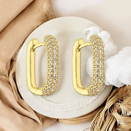 Zaina - Rechteckige Gold Creolen mit Kristallbesatz