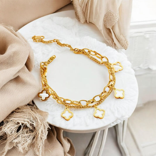 Malia - Charm-Armband mit Weissem Kleeblatt