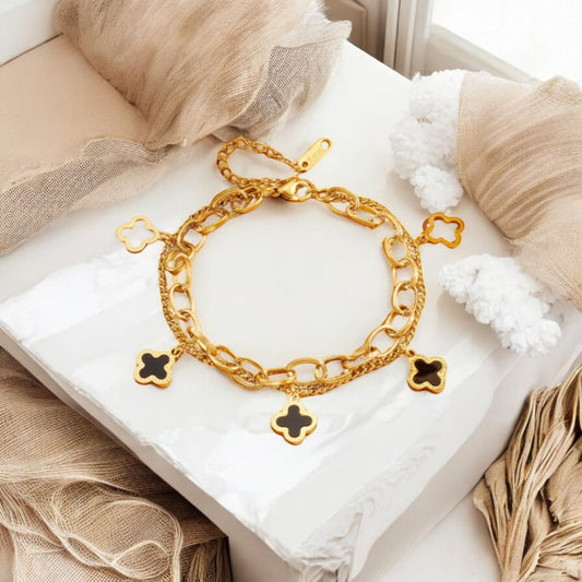 Malia - Charm-Armband mit Schwarzem Kleeblatt