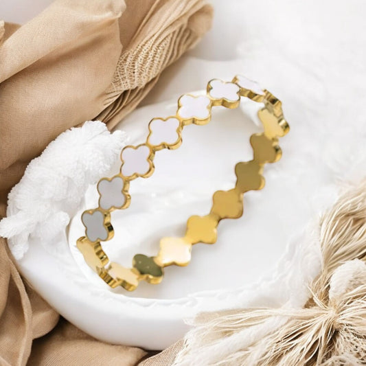 Naima - Elegantes Vierblatt-Klee-Bangle in Weiss