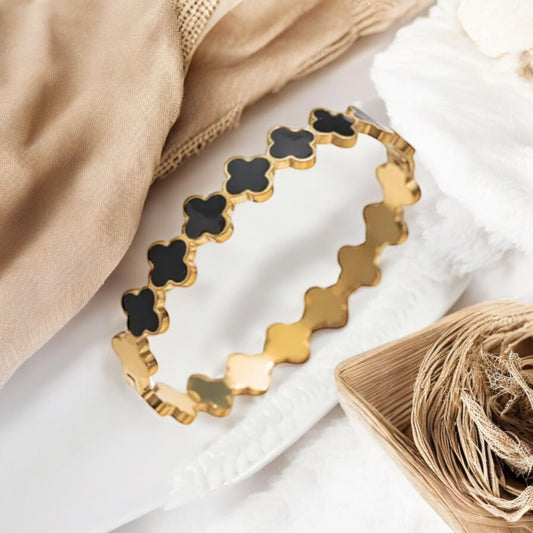 Naima - Elegantes Vierblatt-Klee-Bangle in Schwarz