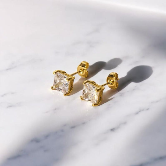 White Sparkle Square Studs – 18K vergoldete Edelstahl-Ohrstecker mit weißem Zirkonia