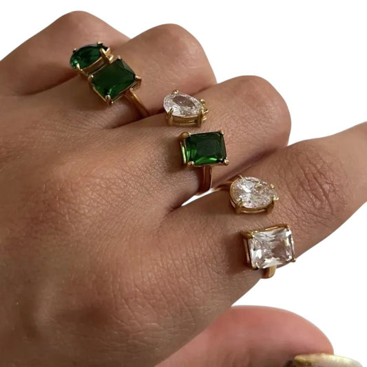 Solana Ring – Verstellbarer Ring aus Edelstahl mit grünen Zirkonia