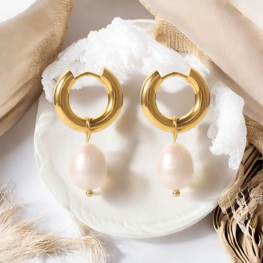 Ocean Pearl Creolen – 18K Vergoldet mit Muschel & Süsswasserperle