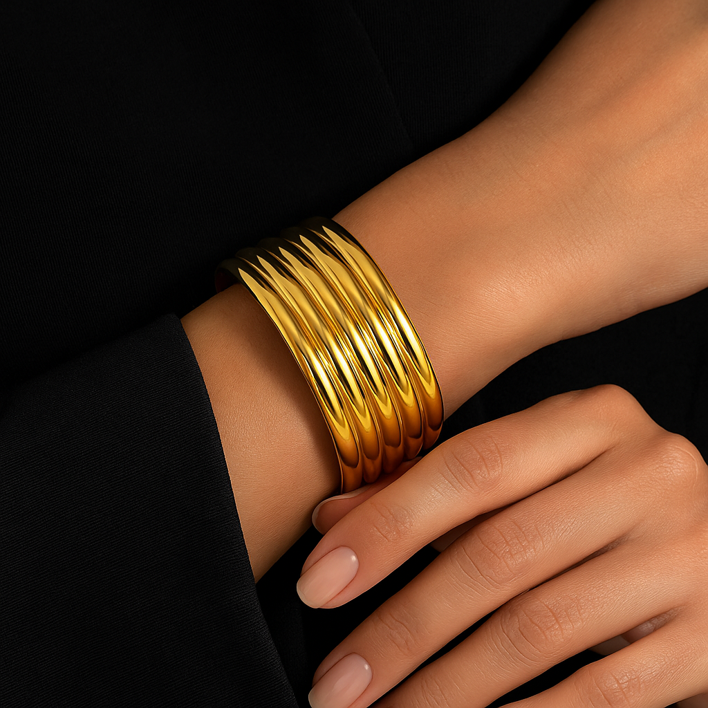 Amelie – Vergoldeter Edelstahl-Armreif mit Rillenstruktur